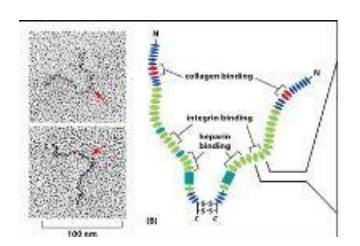 Extracelliular matrix를 구성하는 성분 단백질 중의 하나인 다음 그림의 단백질에서 integrin binding domain에서 adhesion에 주요하게 관여하는 아미노산은? (3점)