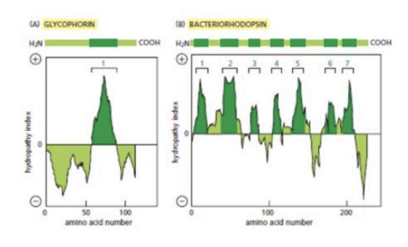 - ② Hydropathy plot에서 양의 값은 소수성(hydrophobic) 성질을 의미한다.