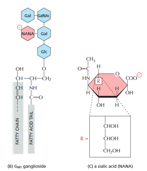 Glycolipidnoncytosolic leaflet에만 분포; 세포 인식·신호 수용체 역할