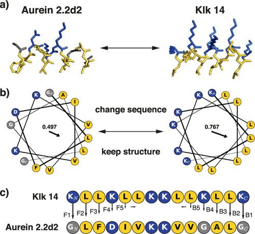 • 34개를 주기로 친수성, 소수성이 교대로 나타나면, 헬릭스가 계속 돌아가더라도 특정 각도 범위(예: 0°180°)에는 친수성 아미노산만, 나머지 각도(180°~360°)에는 소수성 아미노산만 모일 수 있음.