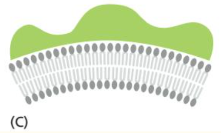 위 그림 (D)는 protein이 큰 head group을 가진 lipid(sphingomyelin이 그 예시)에 결합하고 cluster하여 membrane을 bend하는 것을 보여준다.