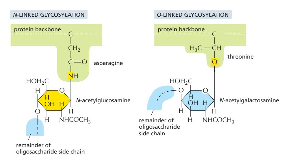 - 일부 경우 hydroxylated proline과 lysine (예: collagen)