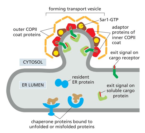 Coat Assembly Control by Monomeric GTPase 참조. Sar-1(GTPase), Sar1-GEF / Sec23, Sec24 (adaptor proteins) / Sec13, Sec31 (Outer coat)
