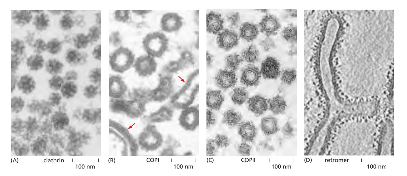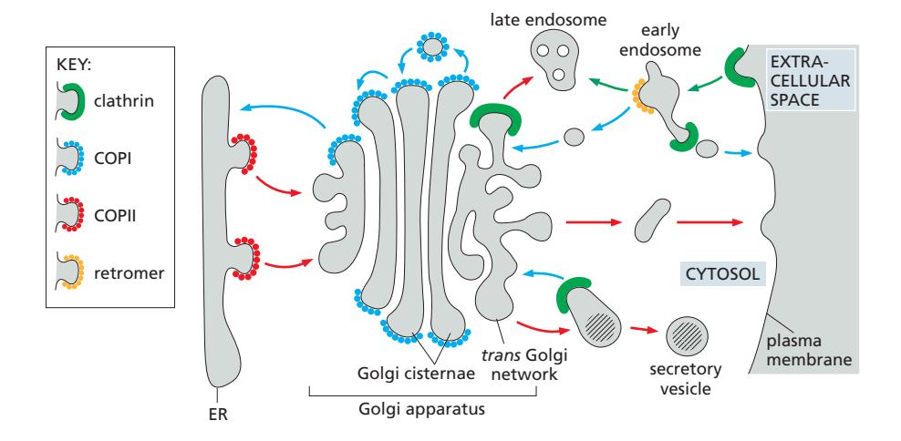 세포는 네 가지 주요 type의 coated vesicle을 사용한다: