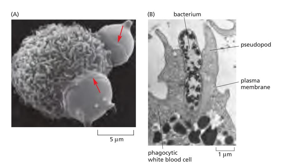 Phagocytosis (“cell eating”)는 세포가 phagosome이라고 불리는 큰 endocytic vesicle을 사용하여 큰 입자(미생물, 죽은 세포 등)를 섭취하는 endocytosis의 특수한 형태이다.