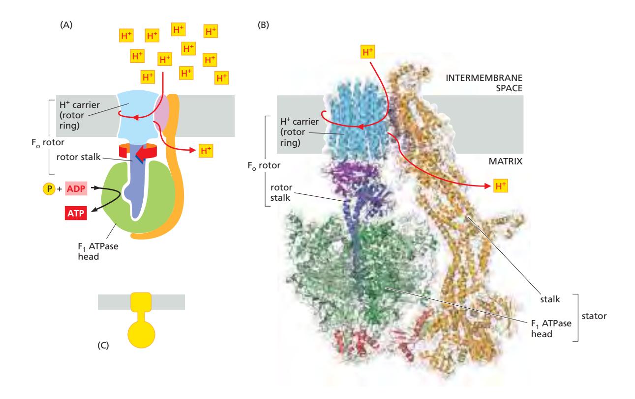 - 위치: 미토콘드리아 crista membrane (matrix 쪽으로 F₁ head가 돌출)
