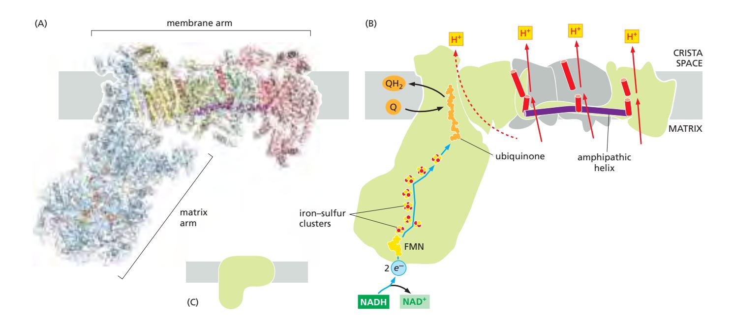Complex INADH dehydrogenaseNADH → ubiquinone4 H⁺/e⁻