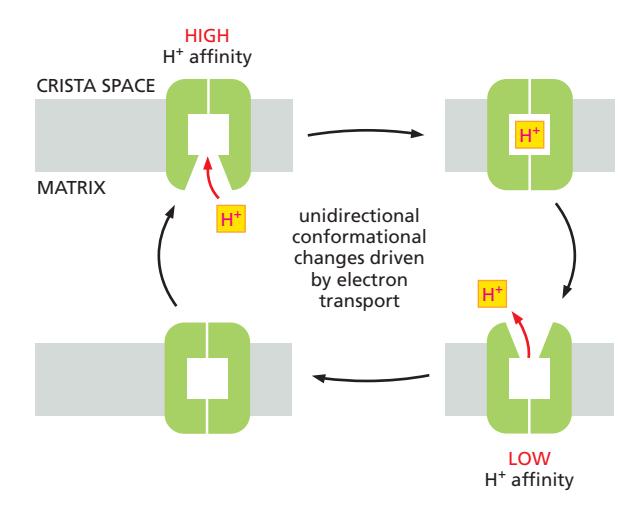 각 respiratory complex는 전자 전달과 연동된 conformational change를 통해 H⁺를 vectorial하게 이동시킨다.