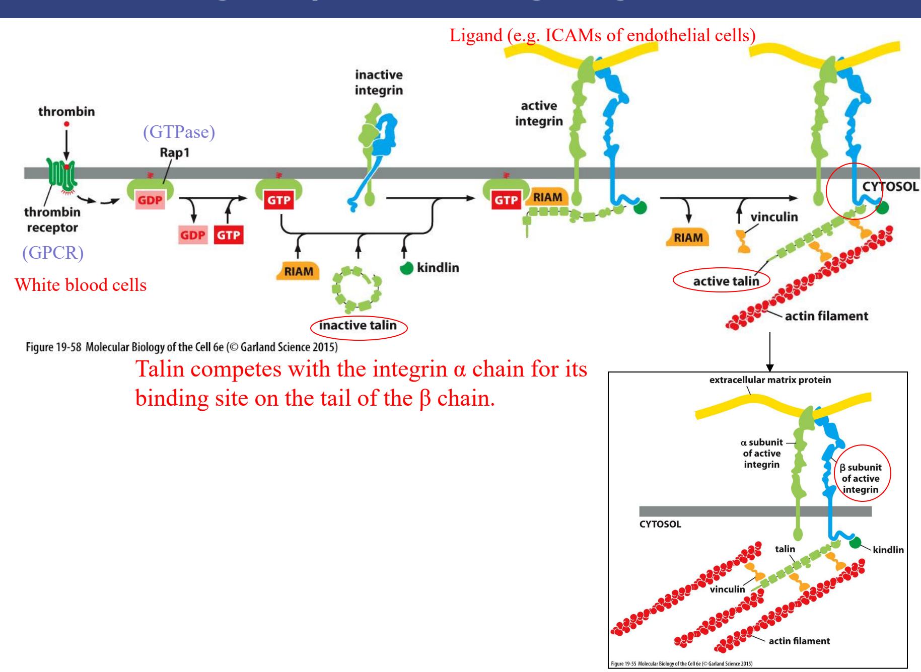 유사한 signaling pathway가 다른 세포 타입에서도 integrin 활성화를 조절할 것으로 추정된다. 세포가 이동하거나, 부착을 만들거나 끊을 필요가 있을 때 integrin 활성화를 빠르게 조절할 수 있다.