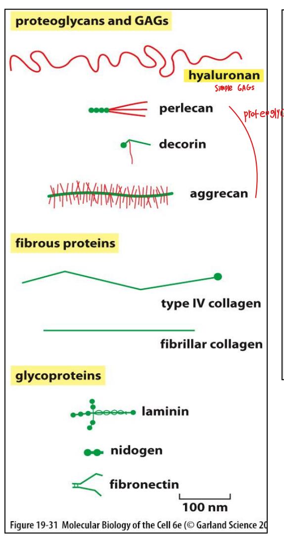 Asparagine-linked oligosaccharide를 포함한다. 대표적으로 fibronectin, laminin, nidogen 등이 있다. Matrix를 조직화하고 세포-matrix 상호작용을 매개한다.