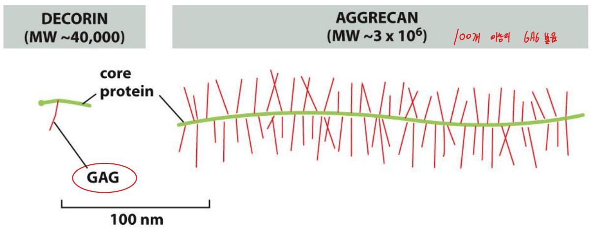 - 한 종류의 core protein도 매우 다양한 수와 종류의 GAG chain을 가질 수 있다.