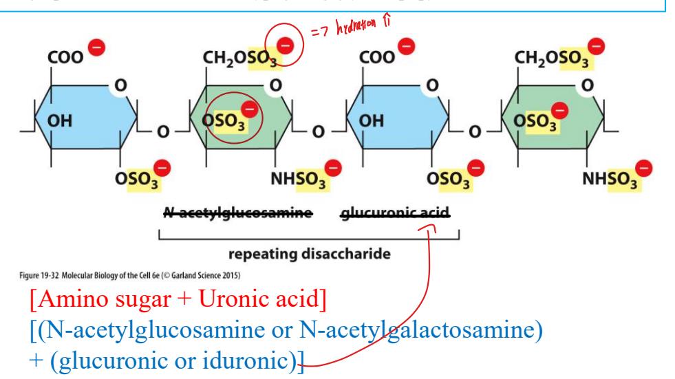 - 음전하(Negative charge): Sugar의 sulfate 또는 carboxyl group 때문에 강한 음전하를 띤다