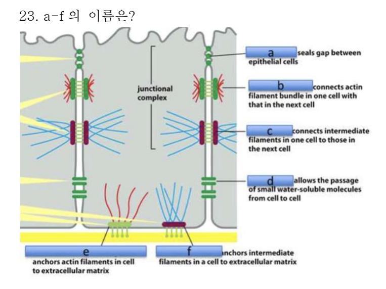 1. Cell junction 들 중에서 scaffold protein, occludin 과 claudin 으로 구성된 junction 은?