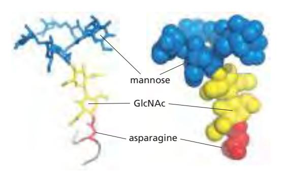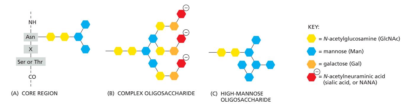 주어진 oligosaccharide가 high-mannose로 남아 있는지 또는 처리되는지는 주로 단백질에서의 위치에 달려 있다: